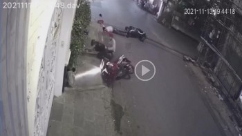 | Vụ việc được camera an ninh ghi lại cảnh một người đàn ông điều khiển xe đạp sang đường bị một nam thanh niên điều khiển xe máy chạy tốc độ nhanh đâm trúng. |