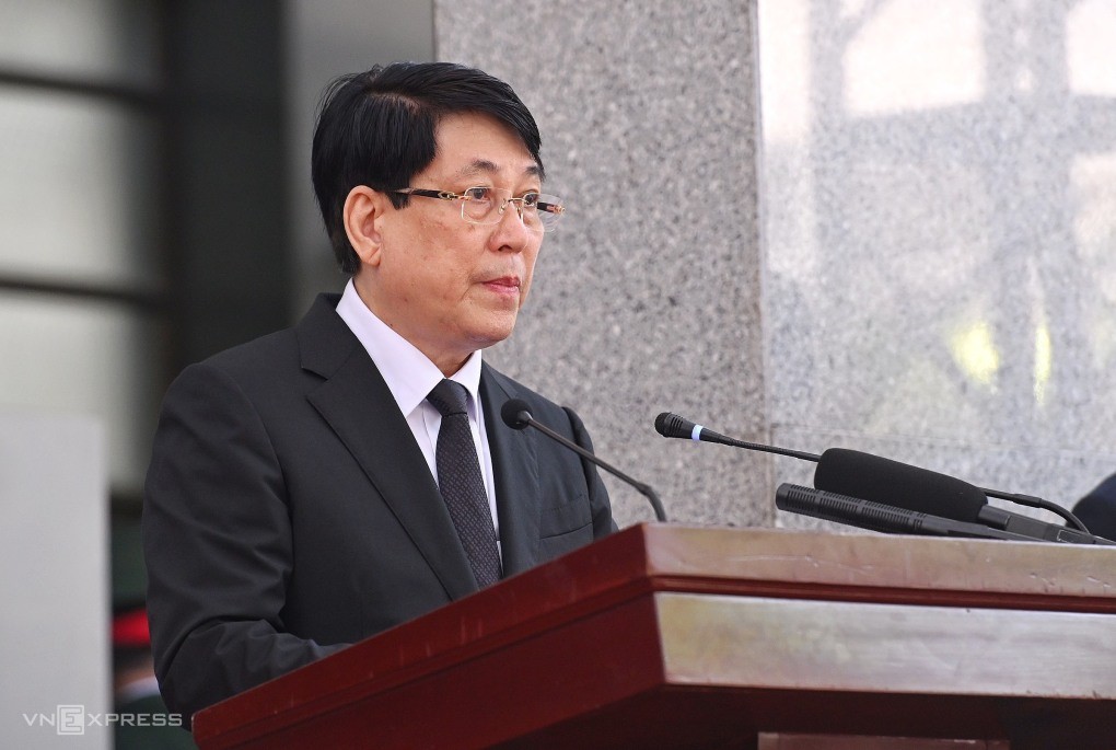 | Thường trực Ban Bí thư Lương Cường điểm lại tiểu sử Tổng Bí thư Nguyễn Phú Trọng. "Gần 60 năm hoạt động cách mạng, đồng chí có nhiều công lao cống hiến to lớn đặc biệt xuất sắc cho sự nghiệp cách mạng vẻ vang của Đảng và dân tộc ta". Tổng Bí thư Nguyễn Phú Trọng mất đi "là tổn thất vô cùng to lớn, không thể bù đắp được với Đảng, nhà nước, nhân dân và gia quyến đồng chí". (Ảnh: VnExpress) |