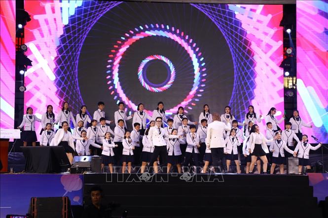 | Dàn hợp xướng thiếu nhi Việt - Hàn biểu diễn tại lễ hội. |