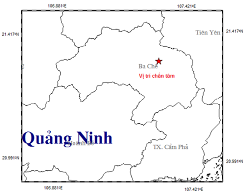 Trận động đất tại huyện Ba Chẽ có độ lớn 2,8 richter xảy ra vào hồi 15 giờ 09 phút 53 giây (giờ Hà Nội), tại vị trí có tọa độ 21.292 vĩ độ Bắc,107.249 độ kinh Đông, độ sâu chấn tiêu khoảng 12 km.