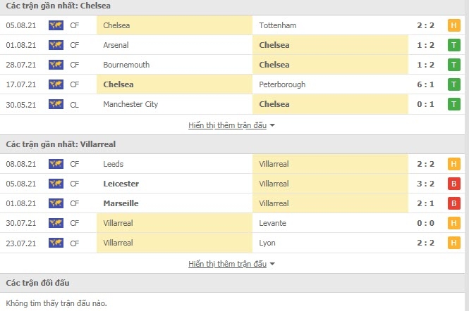 Chelsea có sự chuẩn bị kỹ lưỡng cho mùa giải 2021/22, đặc biệt là trận đấu tranh siêu cúp châu Âu với Villarreal. Theo đó, đội bóng của HLV Tuchel lần lượt đánh bại Peterborough, Bournemouth và Arsenal, còn lại là 1 trận hòa trước Tottenham ở 4 trận giao hữu đã qua.