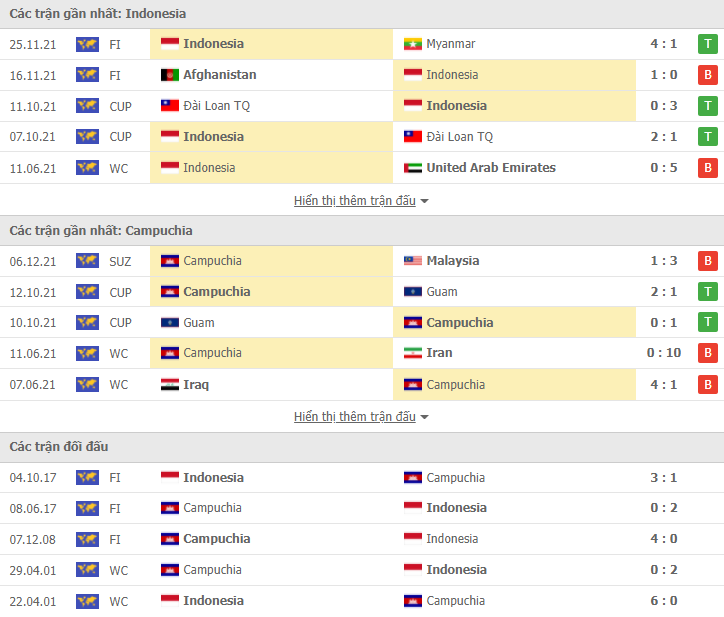 Tỷ lệ Indonesia vs Campuchia: 0:2