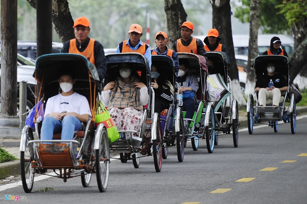 | Tại thành phố Huế (Thừa Thiên - Huế), các đoàn du khách khi tham quan Đại Nội đều đeo khẩu trang ngay từ khi ra khỏi cửa khách sạn (Ảnh: Zing) |
