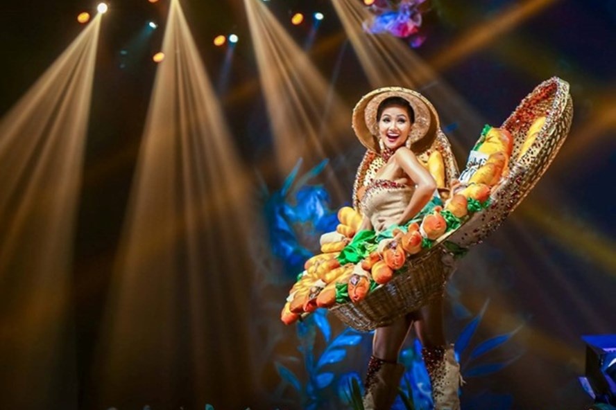 | H'hen Niê trong trang phục dân tộc Bánh mì. H'hen Niê là HHHV Việt Nam 2017, cô đại diện Việt Nam đi thi Miss Universe tổ chức tại Thái Lan. Với phần thể hiện vô cùng xuất sắc,cô đã lọt top 5 tại cuộc thi. Đây là thành tích cao nhất của Việt Nam tại đấu trường sắc đẹp uy tín và khốc liệt nhất thế giới. (Ảnh: Thanh Niên) |