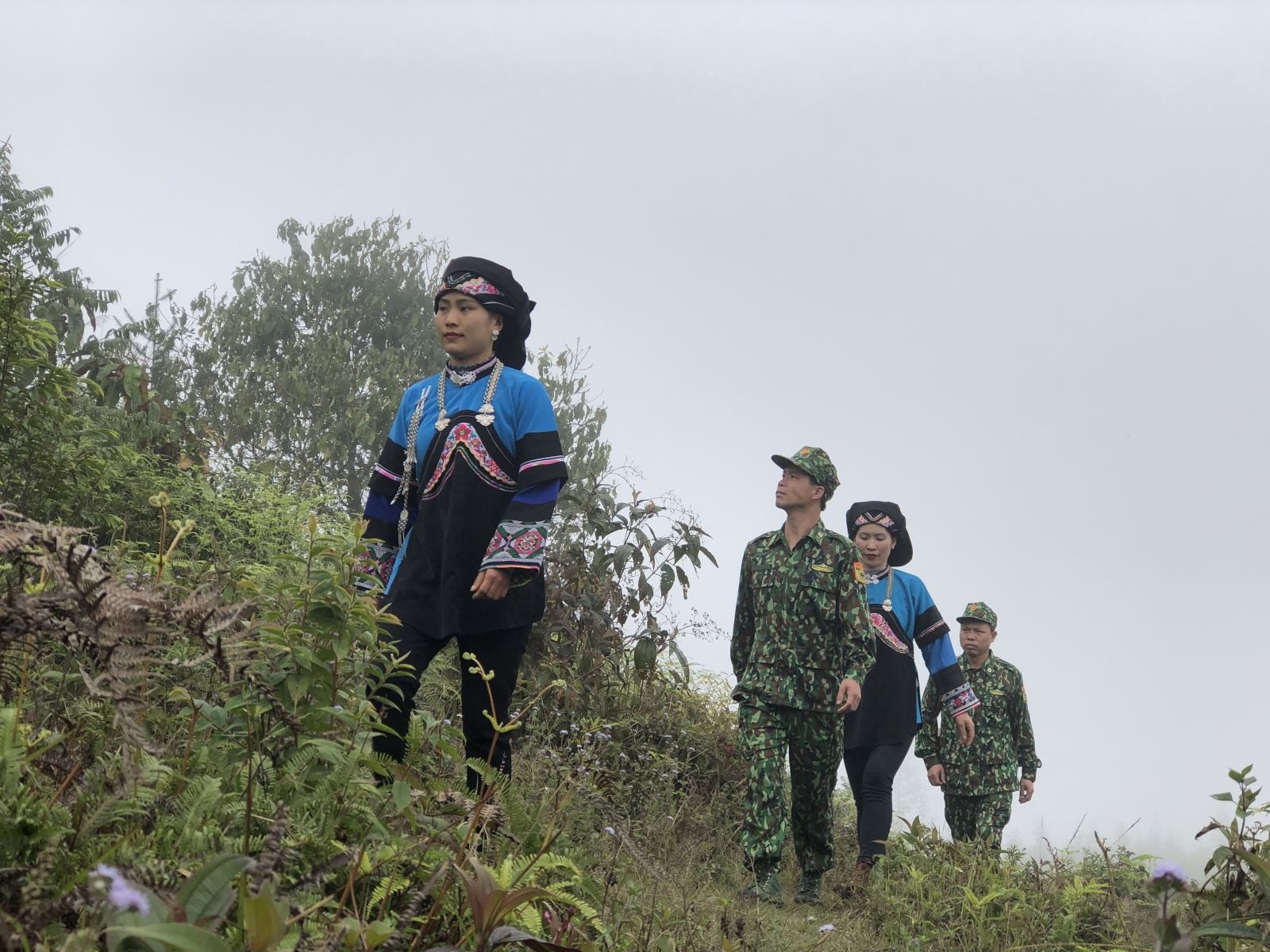 | Lực lượng Bộ đội biên phòng Lào Cai cùng nhân dân địa phương tuần tra, kiểm tra đường mòn, lối mở nơi biên giới (Ảnh: Viết Tôn) |