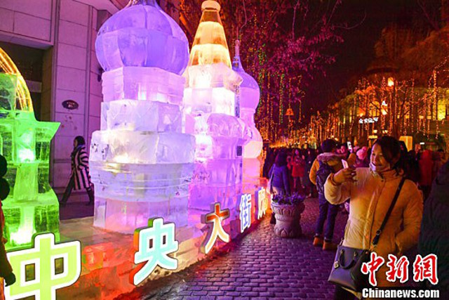 Tâm điểm của lễ hội là bức tượng băng lớn nhất thế giới với chiều dài 103m, cao 31m, bức tượng băng được làm từ băng lấy ở sông Songhua gần đó. Theo The Sun, đây là bức tượng lớn nhất trên thế giới cùng thể loại.