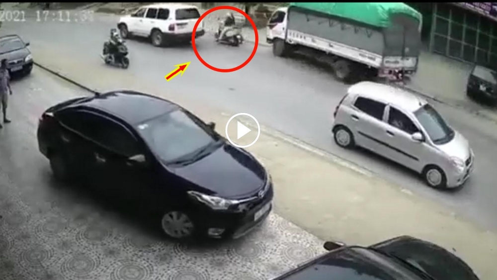 Theo clip ghi lại cảnh 2 người phụ nữ đứng ở dưới lòng đường nói chuyện suýt bị chiếc xe tải cán trúng.