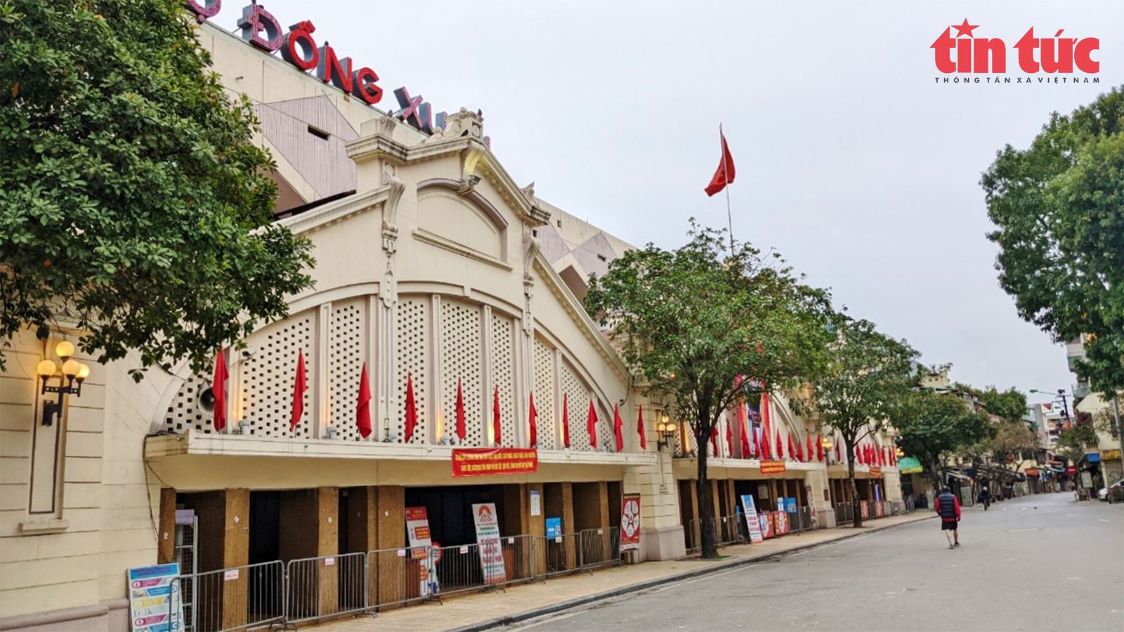 | Chợ Đồng Xuân "khoe" kiến trúc truyền thống trong tĩnh lặng. |