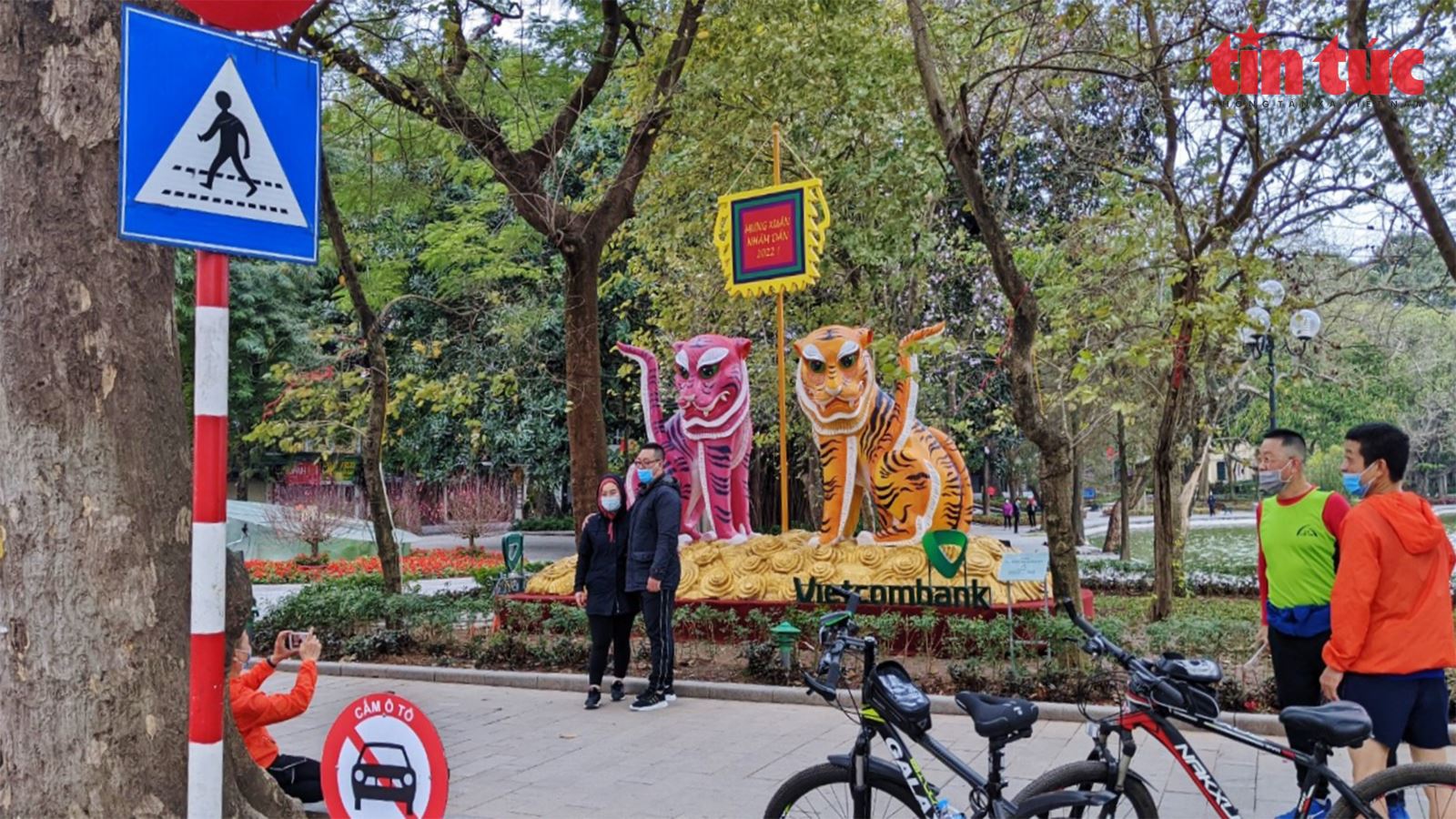 | Sáng sớm mùng 1 Tết khá lạnh, nhưng một số người chăm chỉ tập thể dục vẫn đến với khu vực Hồ Gươm để chạy bộ, đạp xe đạp; như một cách "xuất hành" đầu năm. |