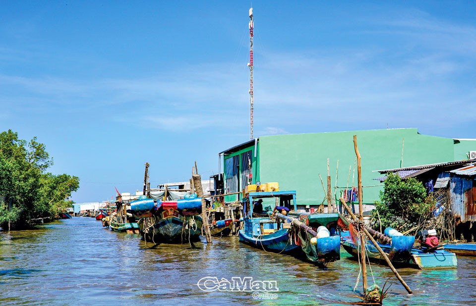 | Xóm biển Phòng Hộ có khoảng 80% tàu ghe đánh bắt nằm bờ vì giá xăng dầu tăng cao. Ảnh: Báo Cà Mau |