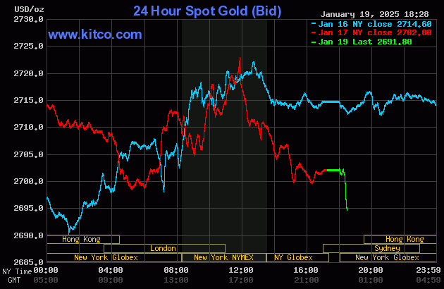 Rạng sáng nay theo giờ Việt Nam, giá vàng thế giới được niêm yết trên Kitco ở ngưỡng 2.691,8 USD/ounce, tăng giảm 10,2 USD/ounce.
