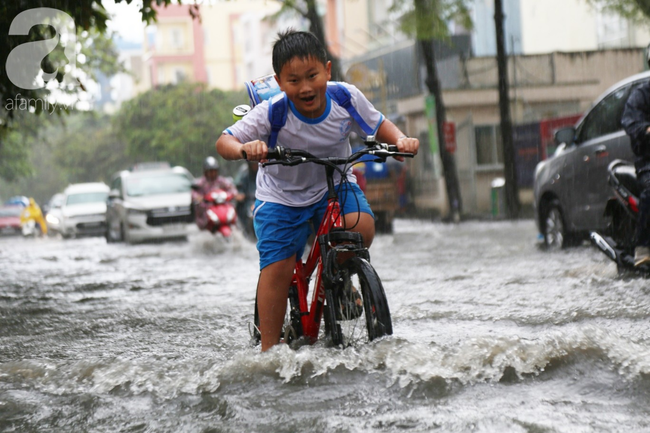 Học sinh phải gồng mình đạp xe vượt "sông" để về nhà.