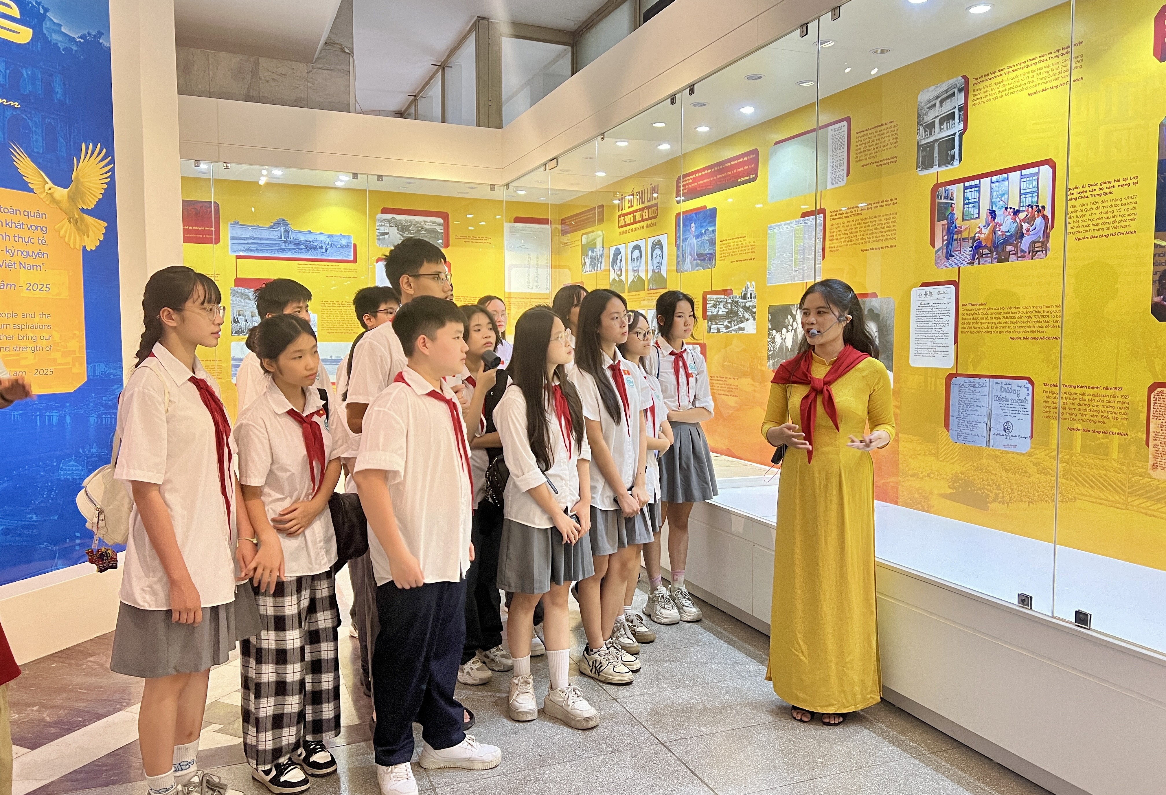 Em Nguyễn Đức Anh, học sinh lớp 8A1, Trường THCS Giảng Võ 2 (Hà Nội) bày tỏ: “Lần đầu tiên em được tận mắt nhìn thấy những giấy tờ, hiện vật gắn với Bác Hồ. Trước đây, em chỉ học về Bác và lịch sử qua sách vở, nhưng khi được xem trực tiếp, em cảm nhận rõ ràng hơn những khó khăn, hy sinh mà các thế hệ cha anh đã trải qua để giành độc lập. Em thấy lịch sử không còn xa vời mà rất gần gũi, sống động và đầy tự hào.”
