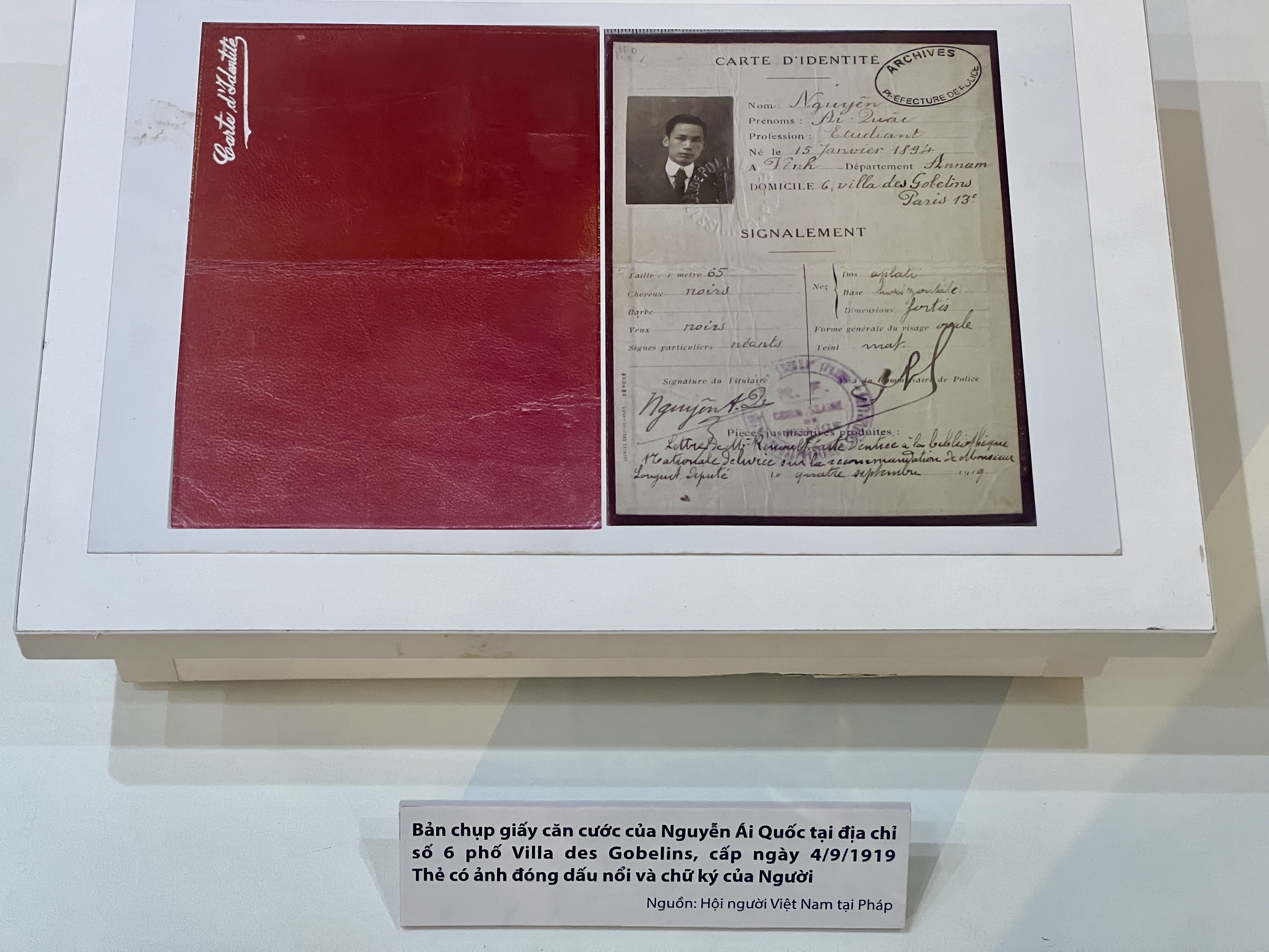 Bản chụp giấy căn cước của Nguyễn Ái Quốc tại địa chỉ số 6 phố Villa des Gobelins, cấp ngày 4/9/1919. (Ảnh: Mai Anh) |