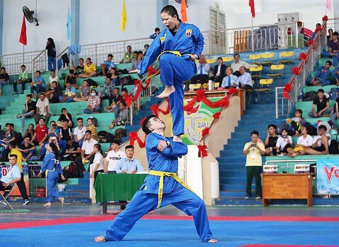 | Vovinam đề cao tinh thần cách mạng tâm thân, luyện võ cũng là rèn luyện tính cách và nâng cao tinh thần dân tộc. (Hình ảnh tại Giải vô địch Vovinam Việt Võ Đạo TP HCM năm 2019) |