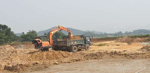 | Các máy xúc đào hoạt động hết công suất để xúc đất lên các xe có trọng tải lớn |