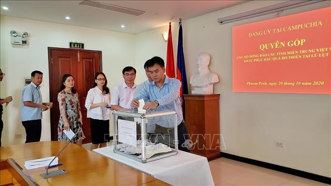 Tại trụ sở Đại sứ quán Việt Nam ở Phnom Penh, Đảng ủy tại Campuchia đã tổ chức buổi lễ quyên góp ủng hộ đồng bào miền Trung bị bão lụt. Theo phóng viên TTXVN tại Phnom Penh, tổng số tiền quyên góp được là gần 36.000 USD. Đây là hoạt động ý nghĩa của những người con đất Việt, dù đang công tác, học tập, đầu tư hay kinh doanh ở ngoài nước nhưng luôn một lòng hướng về Đất Mẹ, đóng góp phần nhỏ bé của mình làm giảm bớt những khó khăn, mất mát của đồng bào miền Trung ruột thịt.