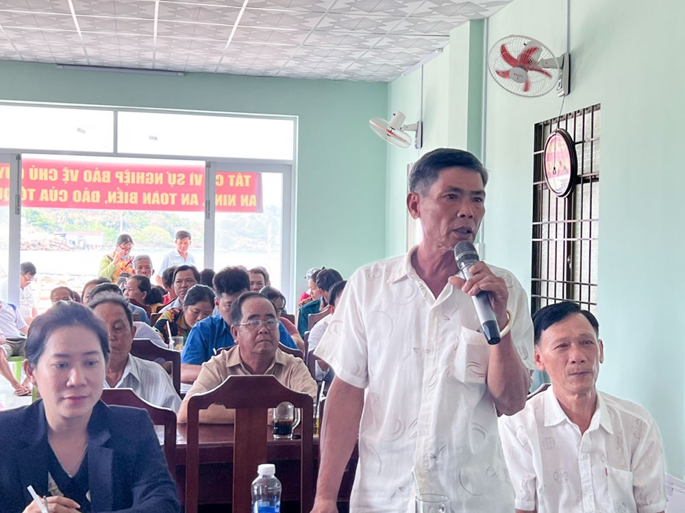 | Ngư dân phát biểu ý kiến tại hội nghị tuyên truyền, phổ biến pháp luật về chống khai thác IUU. |