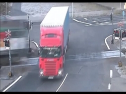 Video đăng tải trên MXH Giao thông ghi lại cảnh một người phụ nữ đi xe đạp điện, cố tình vượt đường ngang trong khi thanh chắn barie đã hạ xuống kèm tiếng còi vang lên inh ỏi.