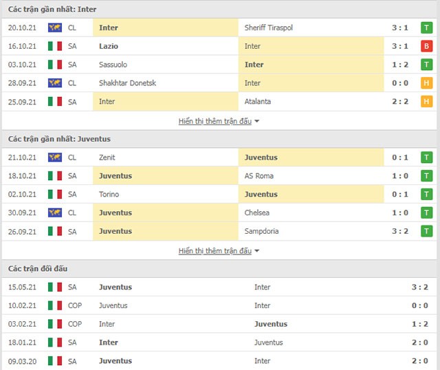 | Tình hình lực lượng: Inter: Sensi chấn thương. Juventus: Rabiot, Dybala và De Ligt chấn thương. Đội hình dự kiến: Inter (3-5-2): Handanovic, Skriniar, De Vrij, Bastoni, Darmian, Barella, Brozovic, Calhanoglu, Perisic, Dzeko, Lautaro Martinez. Juventus (4-4-2): Szczesny, Alex Sandro, Chiellini, Bonucci, Danilo, Bernardeschi, Locatelli, Bentancur, Cuadrado, Morata, Chiesa. * Dự đoán tỉ số: Inter vs Juve: 0-1. * Tỷ lệ Inter vs Juve: Tỷ lệ châu Á FT: 0:1/4 Tỷ lệ O/U: 2 3/4 * Phong độ hai đội: