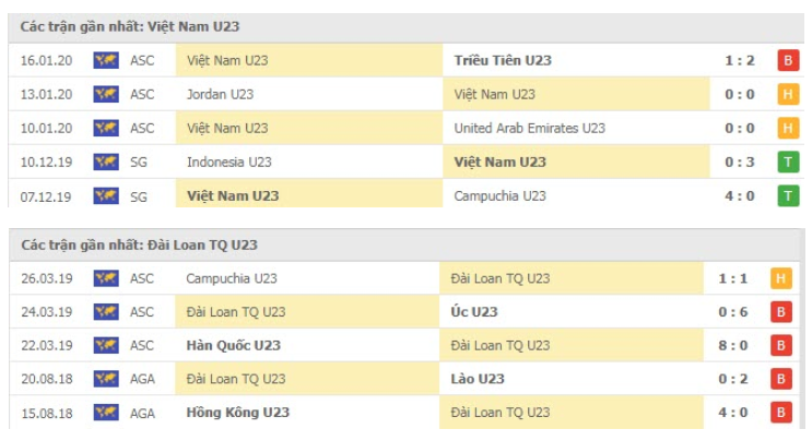 Tính ở các trận đấu chính thức, U23 Đài Loan chỉ thắng kèo 1 lần, hòa 1 và thua tới 4 lần ở 6 trận mới đây. Tại vòng loại giải U23 châu Á 2020, U23 Việt Nam thi đấu ấn tượng với 3 trận thắng liên tiếp và trong đó họ có 2 lần vượt kèo thành công.