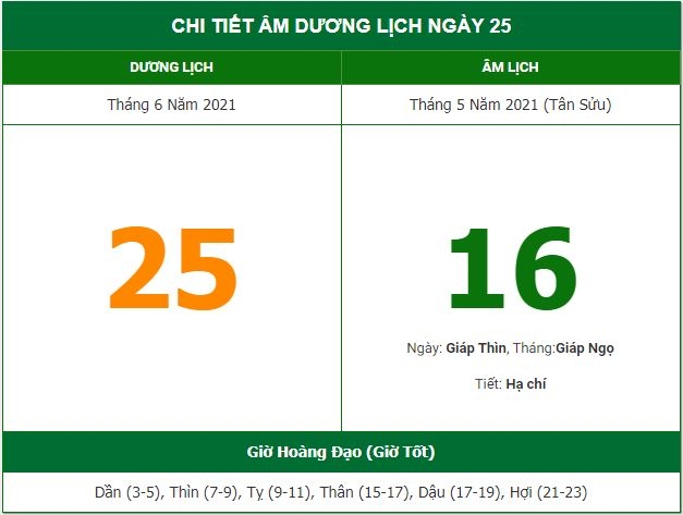 Ngày Dương Lịch: 25-6-2021