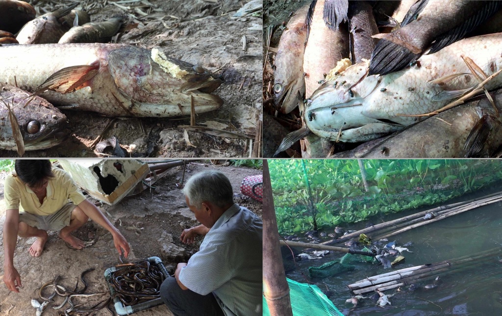 | Một số hình ảnh thủy sản, ếch nuôi của người dân bị chết do nguồn nước bị ô nhiễm |