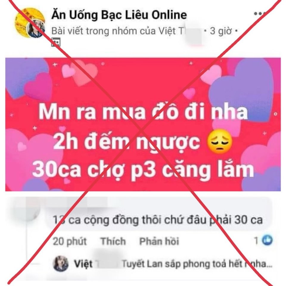 Phạt người tung tin bịa đặt 'phong tỏa TP Bạc Liêu' trên mạng xã hội
