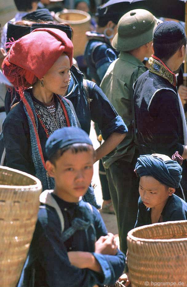Người Dao Đỏ dễ nhận ra với chiếc mũ đỏ lớn.