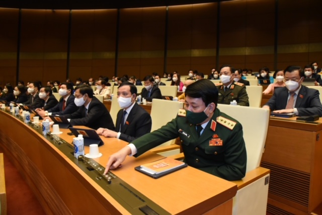 | Đại biểu Quốc hội nhấn nút biểu quyết thông qua các Nghị quyết của kỳ họp. Ảnh: VGP |