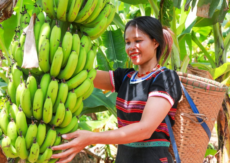 | Chuối lùn trở thành cây trồng giúp phụ nữ Pa Kô vươn lên thoát nghèo. |