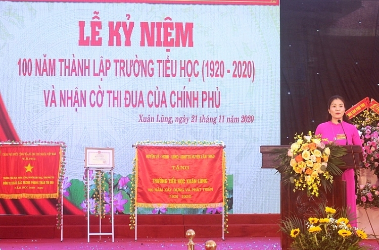 Phát biểu tại buổi lễ, cô giáo Đinh Thị Thủy – Hiệu trưởng trường Tiểu học Xuân Lũng, huyện Lâm Thao, tỉnh Phú Thọ nhấn mạnh: Ngày lễ trọng đại này là dịp để các thế hệ thầy và trò trở về mái trường Tiểu học Xuân Lũng thân yêu để tri ân các thế hệ đi trường, để cùng nhau ôn lại truyền thống vẻ vang, đầy tự hào của ngôi trường 100 năm tuổi. Làng Dòng được mệnh danh là nơi “Địa linh nhân kiệt”, nơi mà “Núi bồi mạch quý” và được coi là “Làng văn hiến ở trung du”.