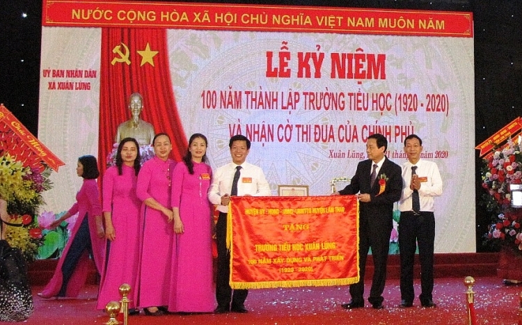 | Huyện ủy – HĐND – UBND - UBMTTQ huyện Lâm Thao tặng bức trướng Trường Tiểu học Xuân Lũng 100 năm xây dựng và phát triển (1920 - 2020). |