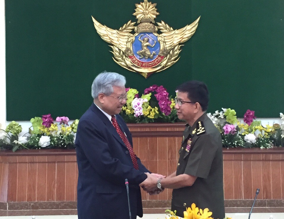 Thống tướng Quốc vụ khanh Bộ Quốc phòng Campuchia Chhay Siangyun đã thân mật tiếp đoàn.