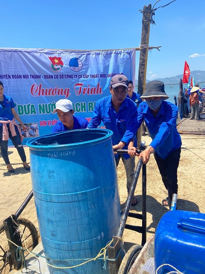 | Chương trình "Đưa nước sạch ra đảo" được Huyện đoàn Núi Thành tổ chức (ảnh Huyện đoàn Núi Thành cung cấp) |