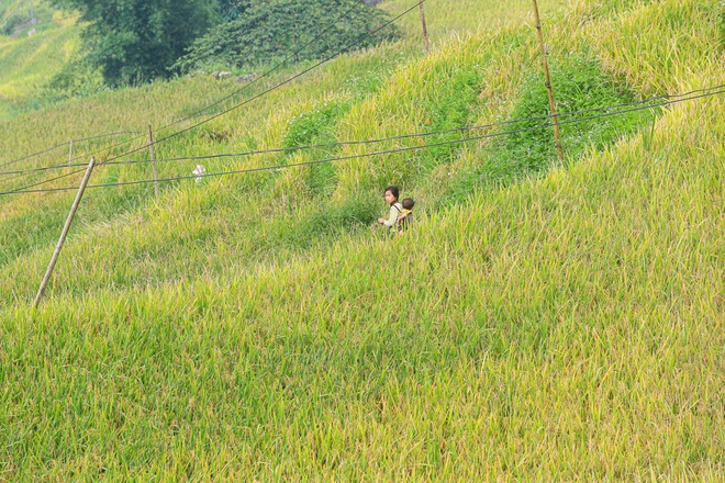 Những cánh đồng bậc thang nối nhau trải dài từ thung lũng Mường Hoa, bản Tả Van, Tả Phìn, Cát Cát,... đến tận Y Tý đều được nhuộm một màu vàng ươm như mật. Mái nhà nho nhỏ, thấp thoáng ẩn hiện giữa "dải lụa vàng vàng xanh xanh" đẹp như bức tranh.