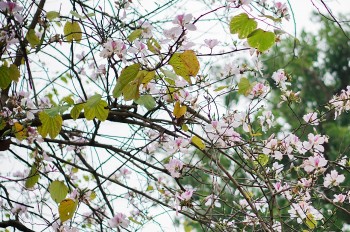 Đầu xuân hoa ban nở rộ trên đường Hoàng Diệu của thủ đô. Rất nhiều bạn trẻ đã tìm đến chụp những bức ảnh về loài hoa được coi là đại diện của vùng đất Tây Bắc này.