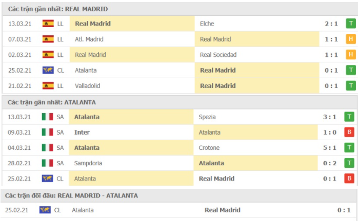 Vừa có được thắng lợi 3-1 trước tân binh Spezia tại vòng 26 Serie A, nhưng Atalanta vẫn chưa thể mang lại sự yên tâm cho người hâm mộ khi đã nhận thất bại 0-1 trên sân khách trong cuộc đụng độ với Inter Milan trước đó vài ngày. Tuy nhiên, đoàn quân của HLV Gian Piero Gasperini vẫn sẽ hành quân đến Madrid với quyết tâm cao nhất ở lượt đấu tới.