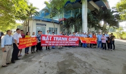 Hàng chục người dân kéo băng rôn yêu cầu Công ty CIC8 trả sổ đỏ mua nhà đất tại khu đô thị mới mới Hưng Phú, Cần Thơ, nhưng đại diện công ty có cách ...
