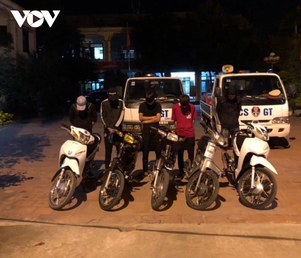 | Một số thanh thiếu niên, cùng phương tiện vi phạm tại cơ quan chức năng. Ảnh: VOV |