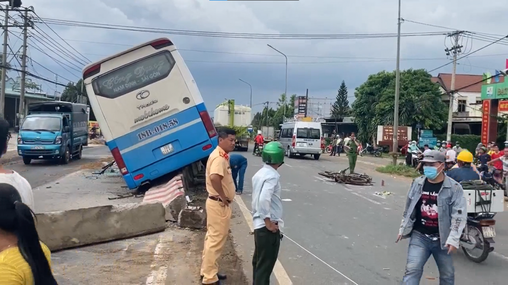 Xe máy qua đường nhưng tài xế xe khách không kịp xử lý, khiến chiếc xe tông trúng 2 xe máy làm 1 người chết ... |