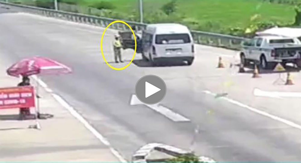 Thấy vậy, Thượng úy Bùi Quang Thanh (cán bộ Đội tuần tra kiểm soát giao thông đường bộ cao tốc số 5, C08) trực tiếp kiểm tra thì phát hiện thiếu giấy phép lái xe. Thượng úy Thanh yêu cầu tài xế cung cấp giấy phép lái xe để đối chiếu với giấy xét nghiệm COVID-19.