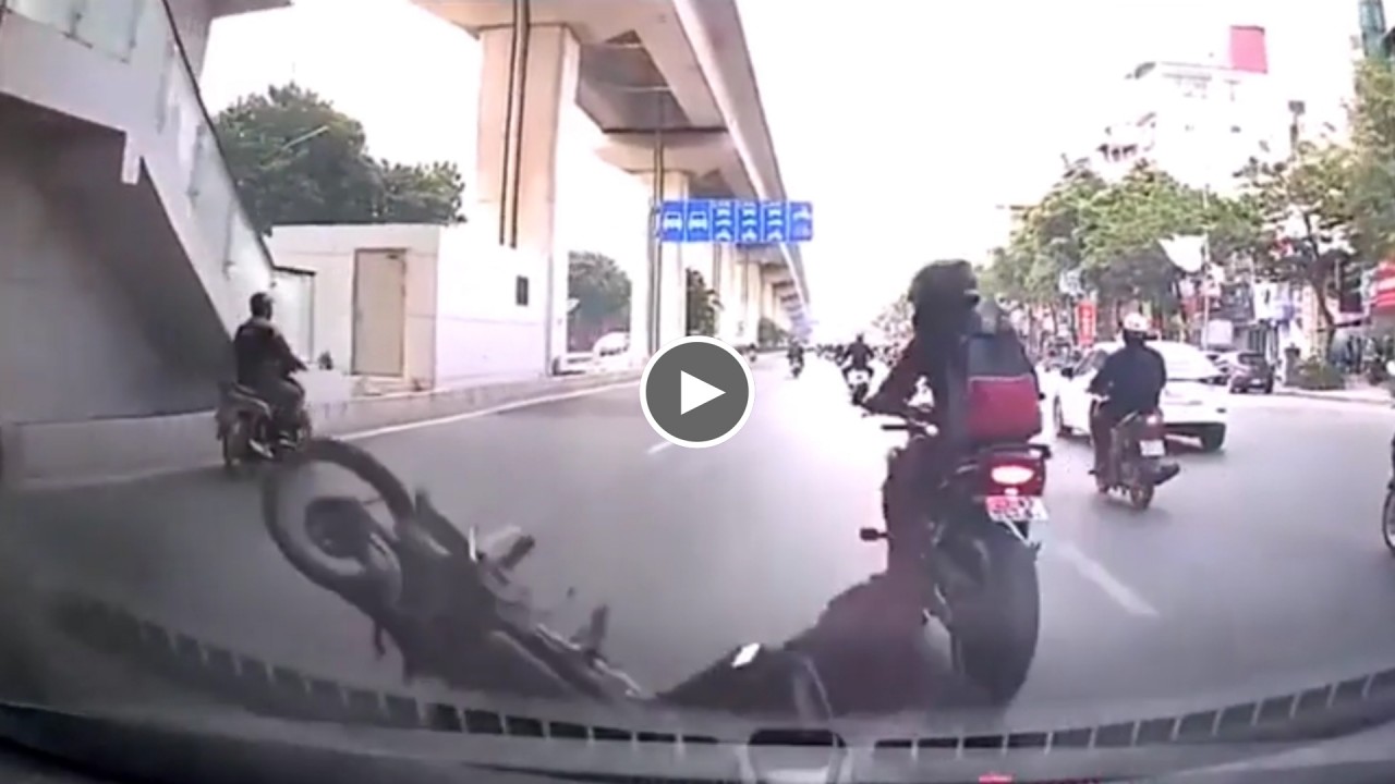 Tình huống giao thông xảy ra trên tuyến đường Nguyễn Trãi (quận Thanh Xuân, Hà Nội), được camera hành trình gắn trên một xe ô tô ghi lại, cho thấy khoảnh khắc hai thanh niên điều khiển xe máy bất ngờ phóng vọt lên với tốc độ cao, trong đó thanh niên điều khiển xe phân khối lớn đã chèn vào đầu xe của thanh niên còn lại, khiến người này bị ngã ra ngay trước mũi xe ô tô đi phía sau.