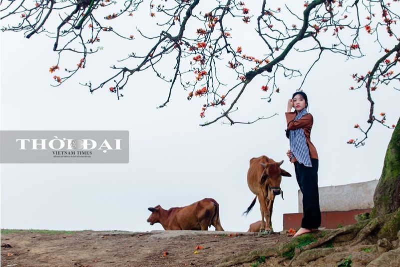 Những cây hoa gạo nở rộ ven sông, e ấp như những cô gái sắp đi lấy chồng.