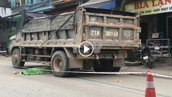 | Do bị đứt cáp, chiếc xe ben đang được cẩu lên cao bất ngờ rơi xuống đất rồi đè trúng nhóm công nhân. |