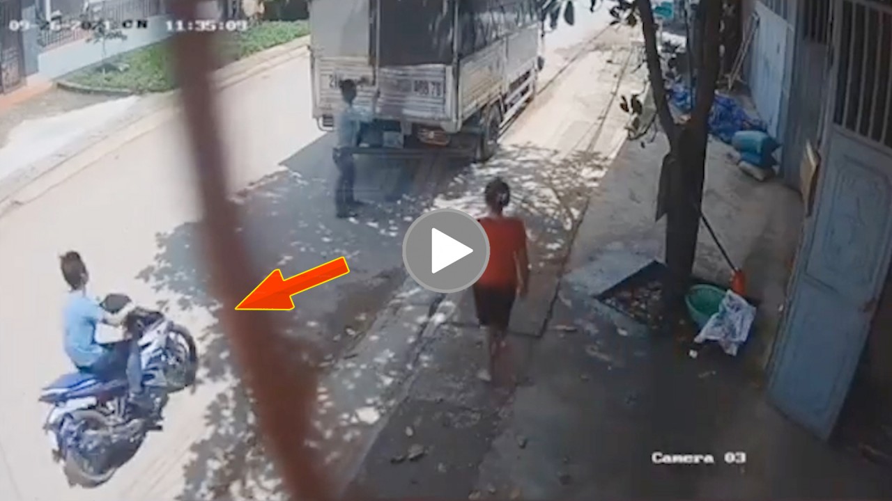 Tài xế đang cho xe tải đỗ bên đường để đóng cửa sau xe thì bị nam thanh niên điều khiển xe máy bất ngờ tông phải. Rất may tài xế bị chỉ thương nhẹ, nhưng nam thanh niên điều khiển xe máy ngã ra đường, bất tỉnh. Nam thanh niên sau đó được đưa đi cấp cứu tại bệnh viện.