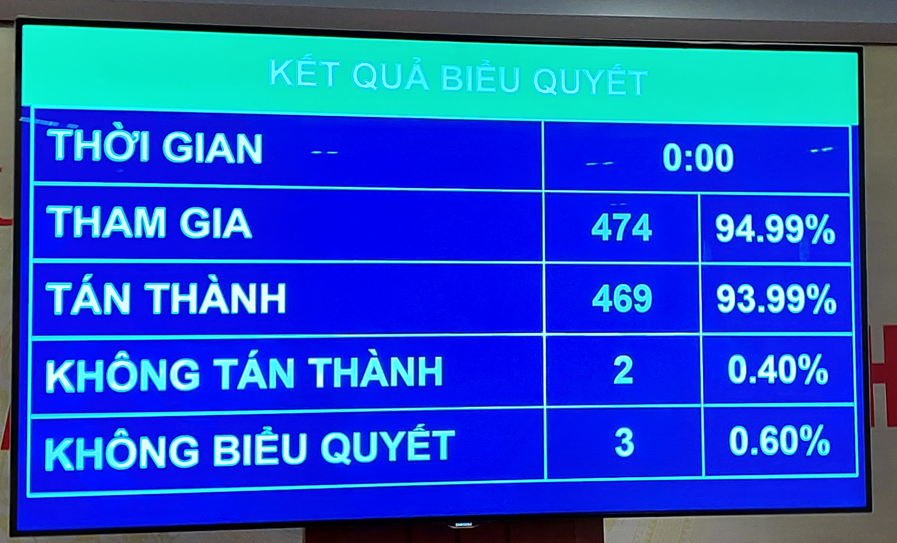 | Nghị quyết về chủ trương đầu tư Dự án xây dựng công trình đường bộ cao tốc Bắc-Nam phía Đông giai đoạn 2021-2025 được Quốc hội thông qua vào chiều 1/11 với 469/474 đại biểu tham gia biểu quyết tán thành. Ảnh: VGP |
