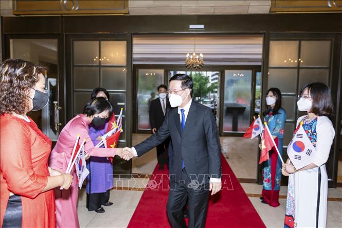 Thường trực Ban Bí thư Võ Văn Thưởng và đoàn cũng đã đến thăm Đại sứ quán Việt Nam tại Hàn Quốc, gặp gỡ, tìm hiểu tình hình học tập, làm việc và đời sống cán bộ các cơ quan đại diện, các đại diện cộng đồng người Việt Nam tại Hàn Quốc, thông tin về tình hình của đất nước, đường lối, chính sách liên quan của Đảng, Nhà nước.