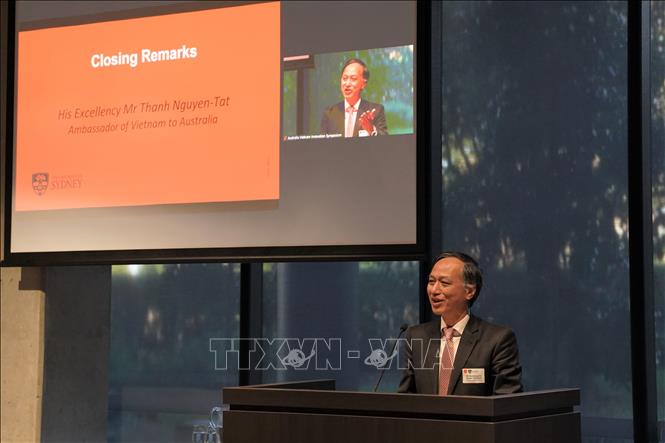 | Đại sứ Việt Nam tại Australia Nguyễn Tất Thành phát biểu bế mạc hội nghị. Ảnh: Thanh Tú/PV TTXVN tại Australia |