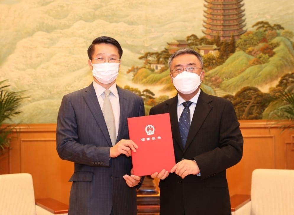 | Tổng Lãnh sự Việt Nam tại Hong Kong và Macau Phạm Bình Đàm (phải) nhận Giấy Chấp thuận Lãnh sự từ Quyền Chủ nhiệm Văn phòng Đặc phái Bộ Ngoại giao Trung Quốc tại Khu Hành chính đặc biệt Hong Kong (Trung Quốc) Dương Nghĩa Thụy. |